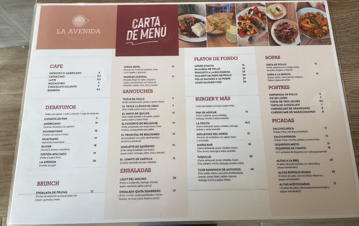 If you find yourself wandering the charming streets of Huarmey, you simply cannot miss La Avenida - Cafetería. Nestled at Av. Alberto Reyes 168, this delightful spot is more than just a place to grab a bite; it’s an experience that envelops you in warmth and community. With its convenient opening hour of 8 AM, it is the perfect destination for early risers eager to indulge in a scrumptious breakfast or simply enjoy a good cup of coffee to kick-start their day.